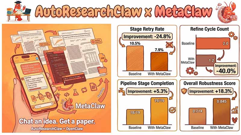 TL;DR: Built on OpenClaw, Cihang Xie’s team combined MetaClaw with AutoResearchClaw to upgrade fully automated research workflows, cutting refinement cycles by 40% and retries by 25% while boosting robustness by 18%. Without retraining or code changes, it orchestrates end-to-end pipelines from prompt to paper, but its intermediate layer between models and memory may expose sensitive data to shared training and potential leakage risks.
