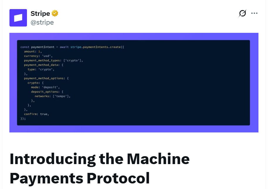 TL;DR: Stripe introduced the Machine Payments Protocol (MPP), an open standard that lets AI agents make and receive payments programmatically. Agents can request services, authorize payments, and complete transactions using stablecoins or traditional methods, with businesses handling them through existing Stripe systems. Early use cases include paying for APIs, browser sessions, physical mail, and even ordering real-world goods.