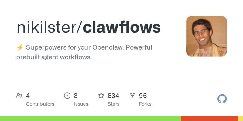 TL;DR: A developer open sourced ClawFlows, a workflow system for OpenClaw offering 100+ prebuilt templates spanning daily routines, health, smart home, finance, work, and developer tasks. It acts as a workflow library rather than a ready-to-run solution, requiring integrations like email, calendars, and APIs. He claims daily use significantly improved his productivity and life management.