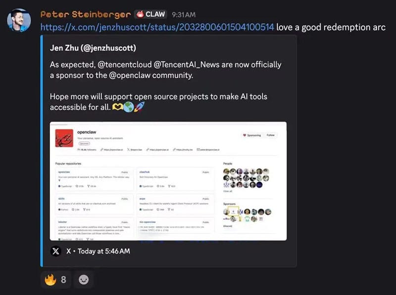 TL;DR: Peter Steinberger confirmed that Tencent has become a sponsor of OpenClaw, marking a shift after earlier tensions. The dispute began when Tencent was accused of scraping skills from ClawHub for its SkillHub platform without supporting the project. The new sponsorship, now listed on GitHub through Tencent Cloud.